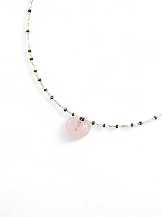 Colar Coração - rosa salpicado