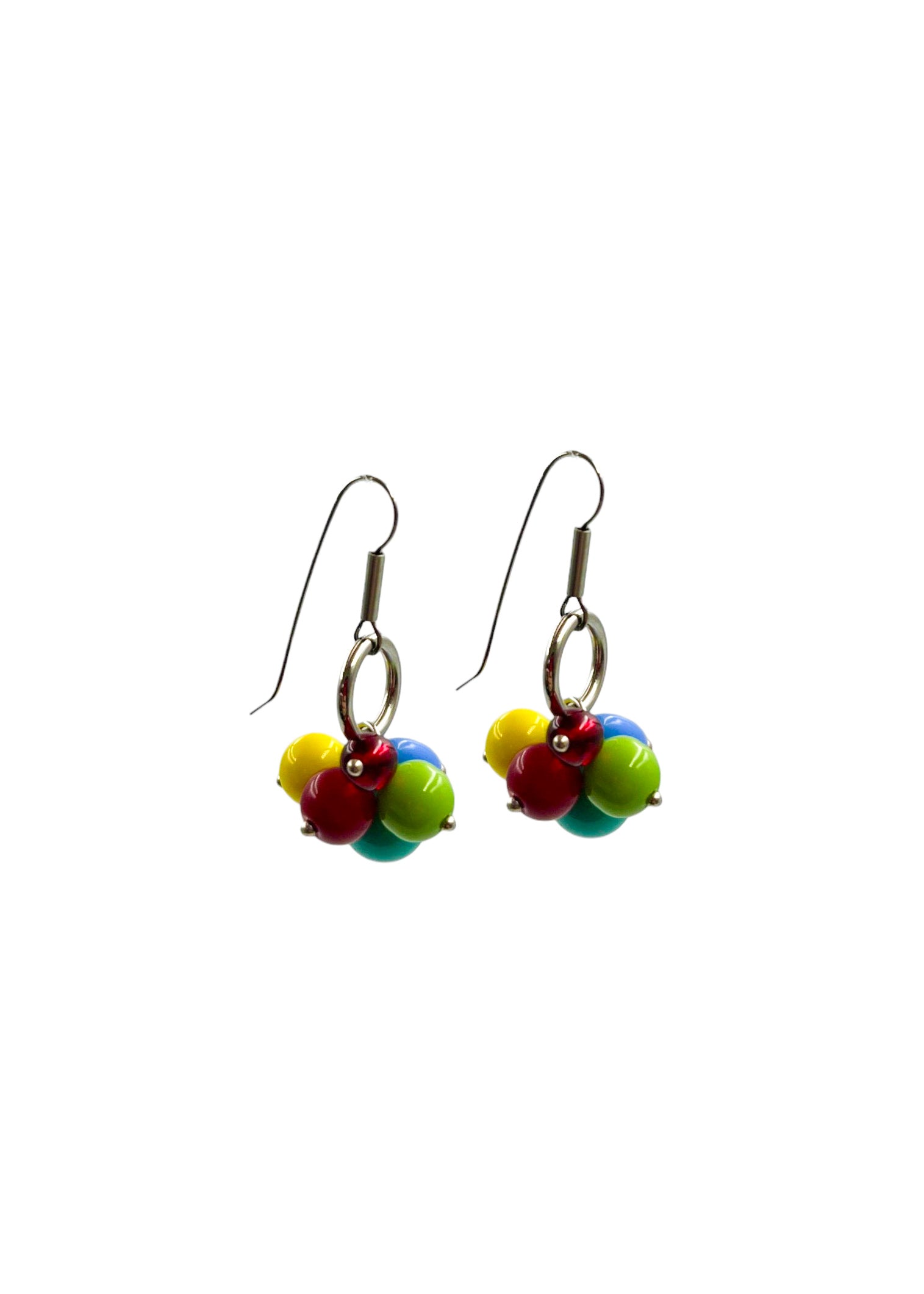 Brinco longo, cacho de continhas de vidro, gancho de aço inox hipoalérgico.