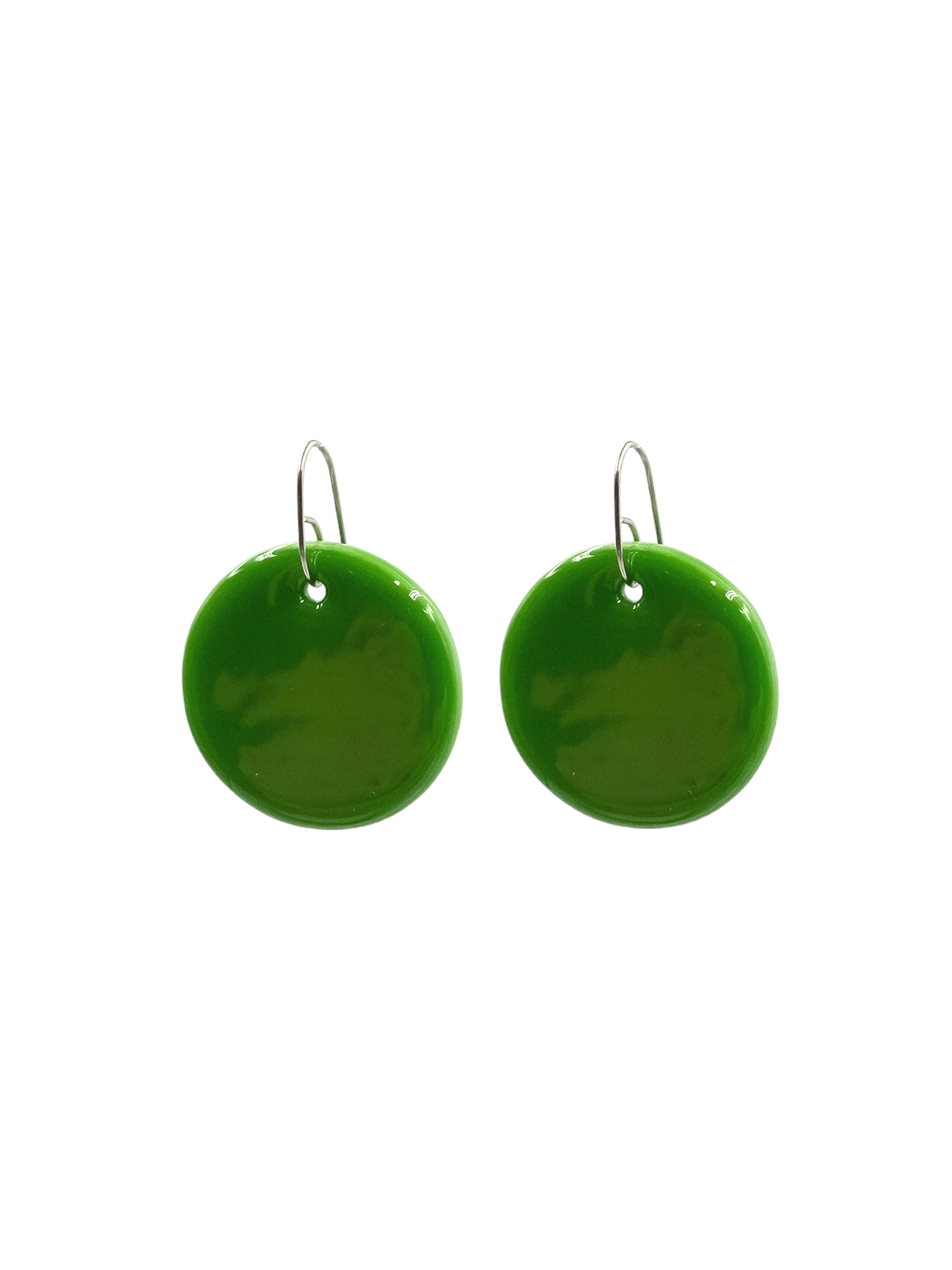 Circulo de vidro fundido manualmente no ateliê Moema Prado Acessórios e gancho de inox.