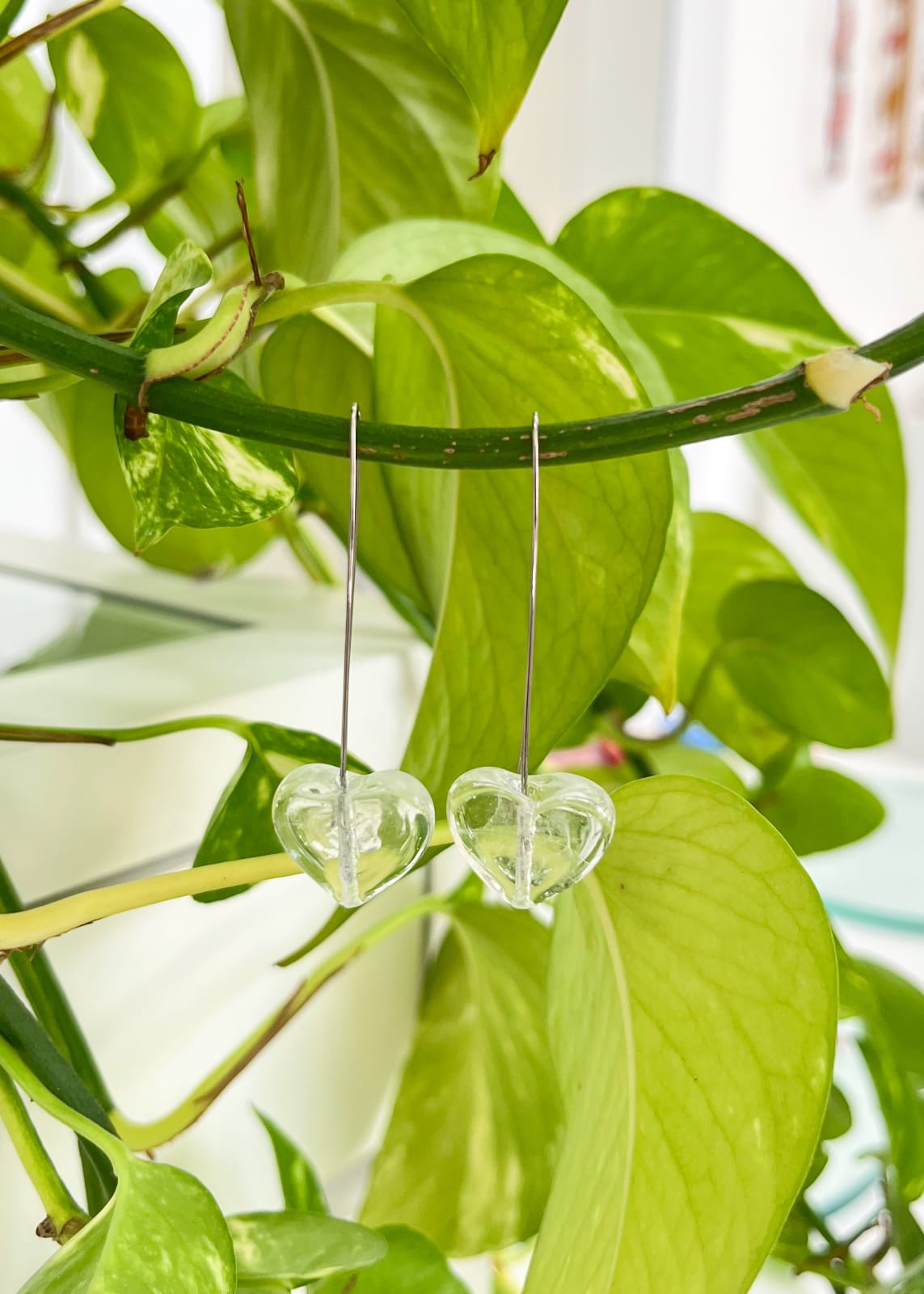 Coração de vidro modelado no fogo e gancho de inox.