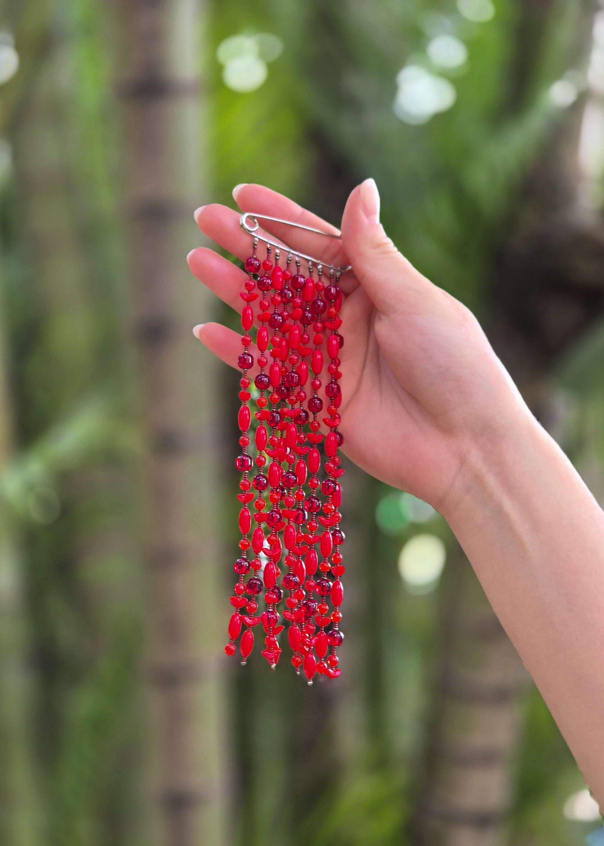 Broche com 18cm de ponta a ponta.