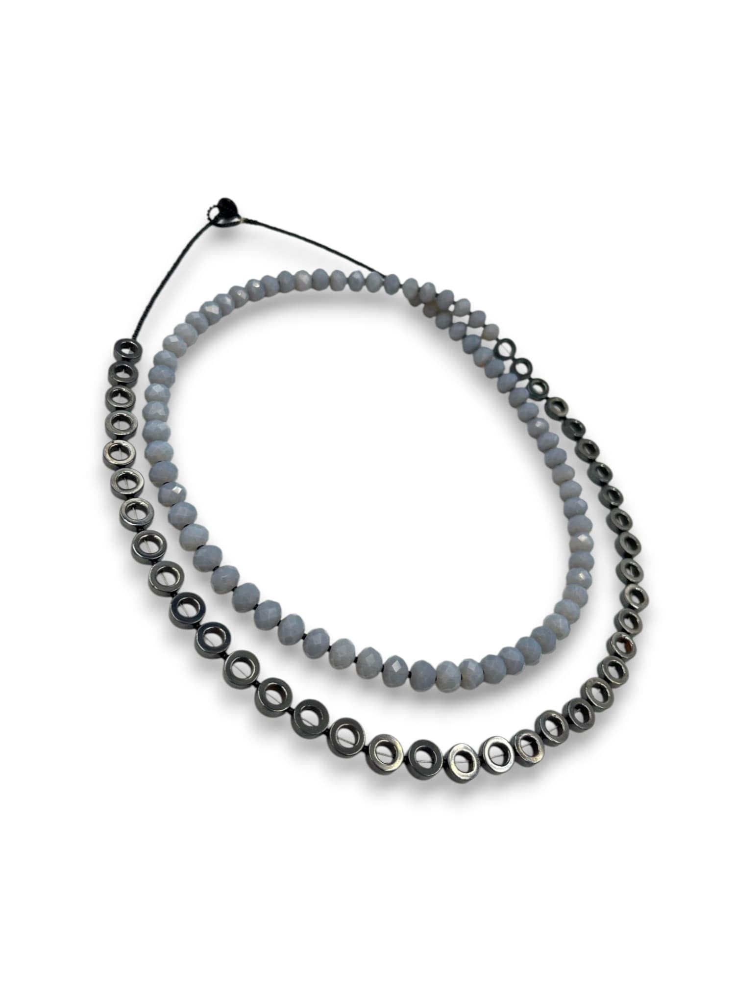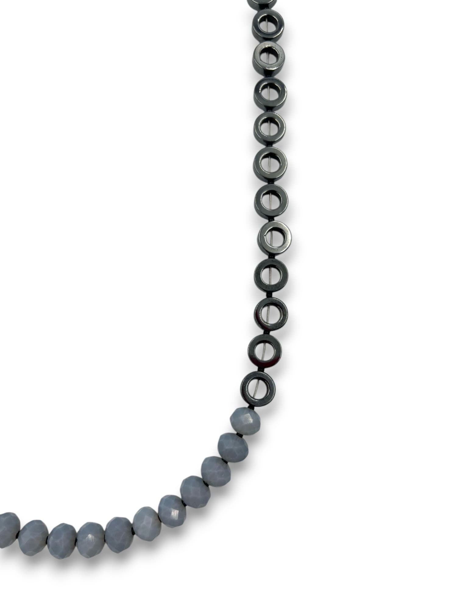 Hematita, cristais cinzas e miçangas grafite da República Tcheca.