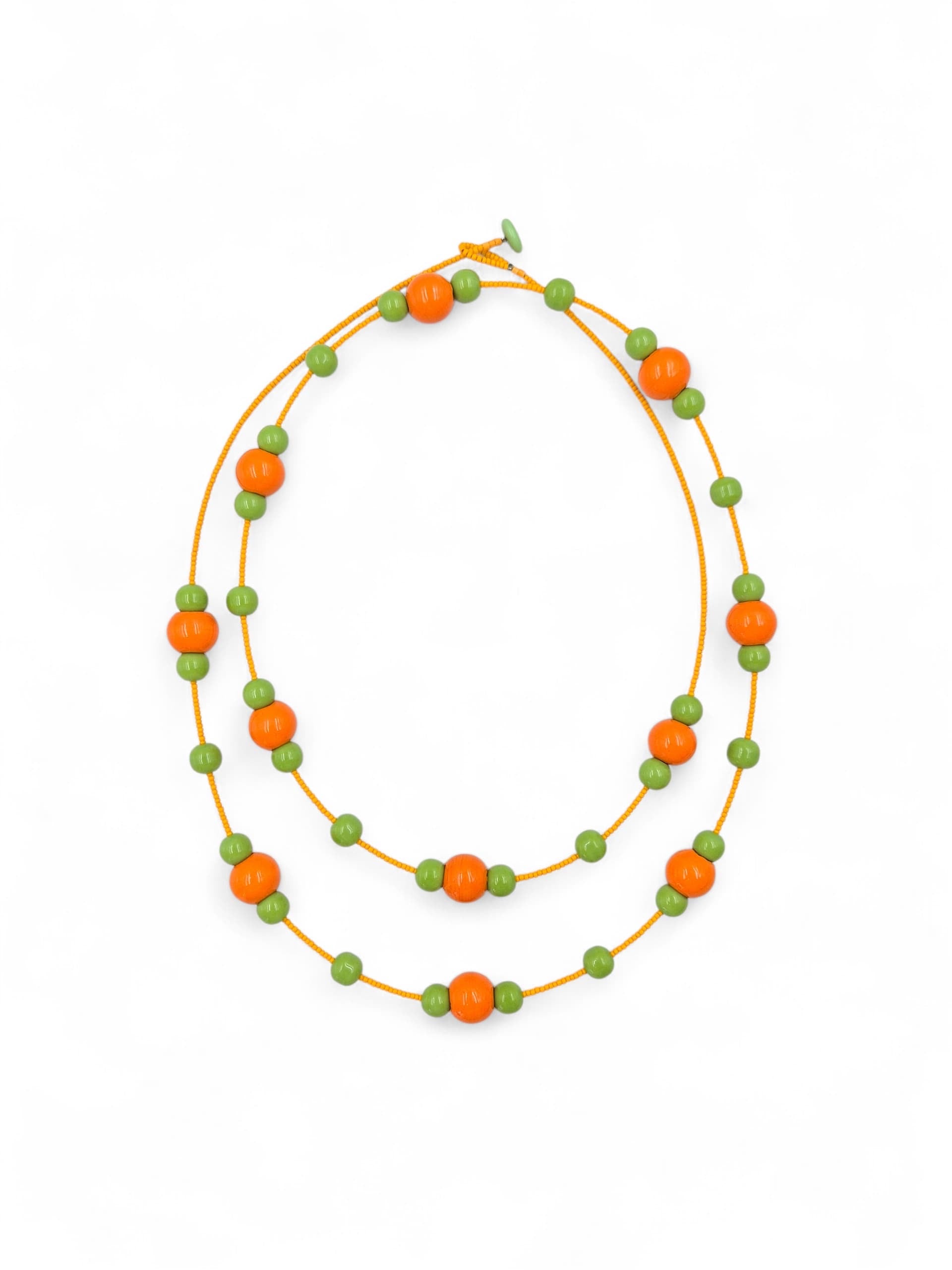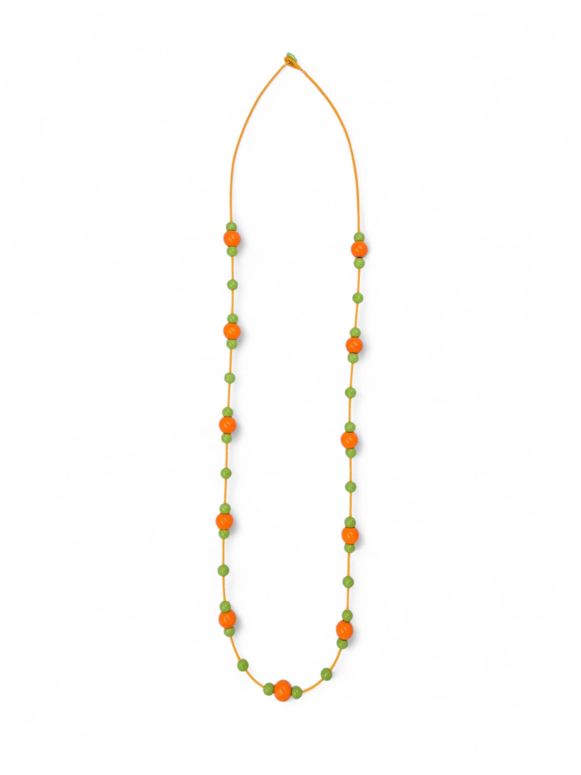 Colar longo, cabo de aço, contas e miçangas da de vidro da República Tcheca.