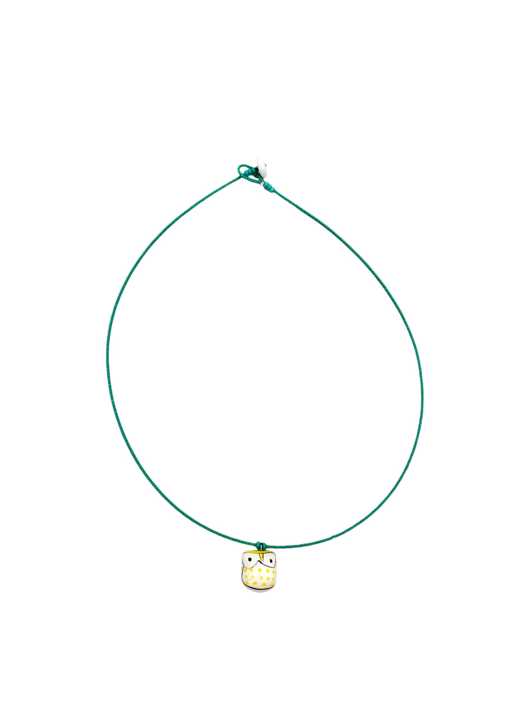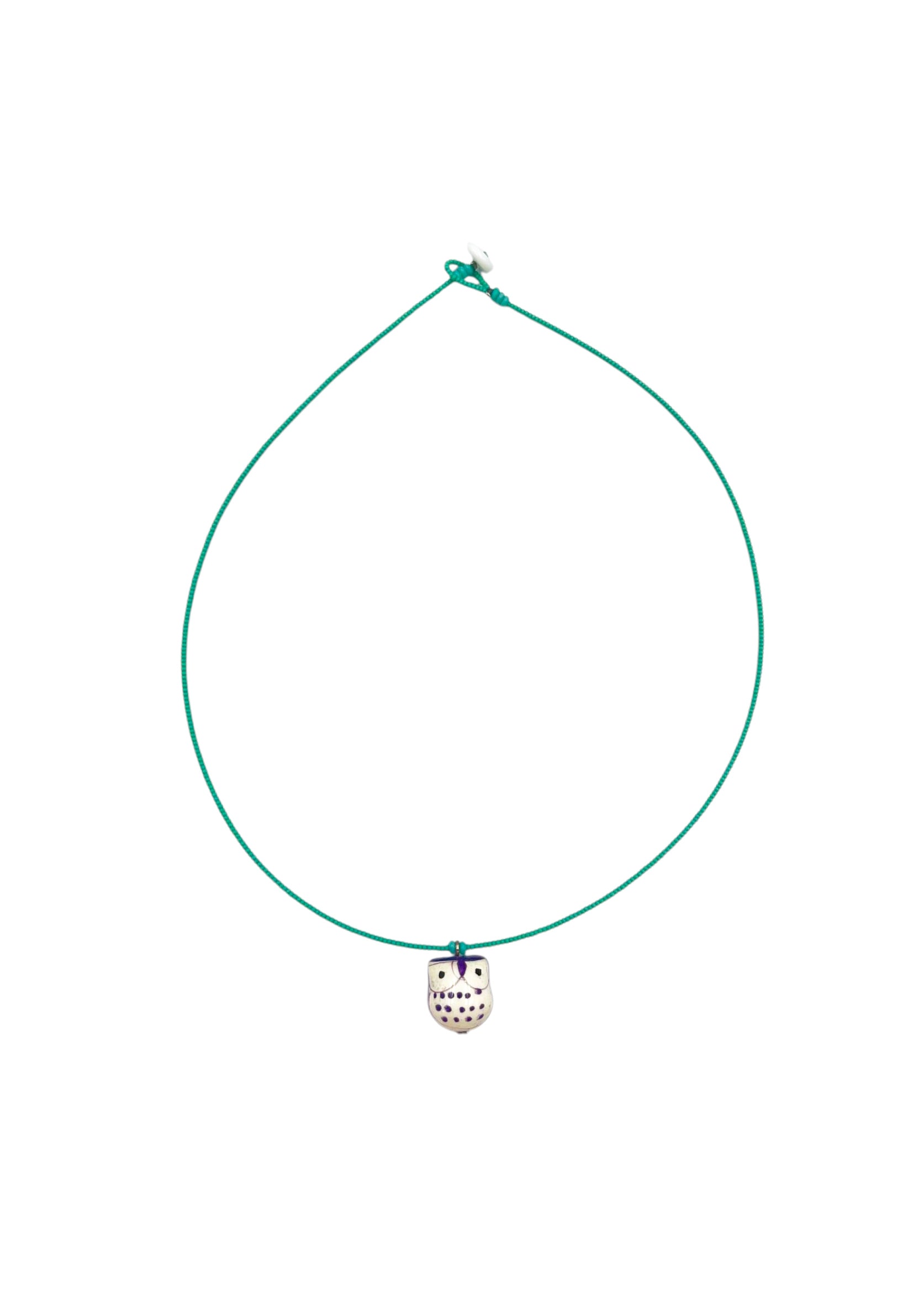Colar curto, micro miçangas da República Tcheca, corujinhas de porcelanas pintadas manualmente.