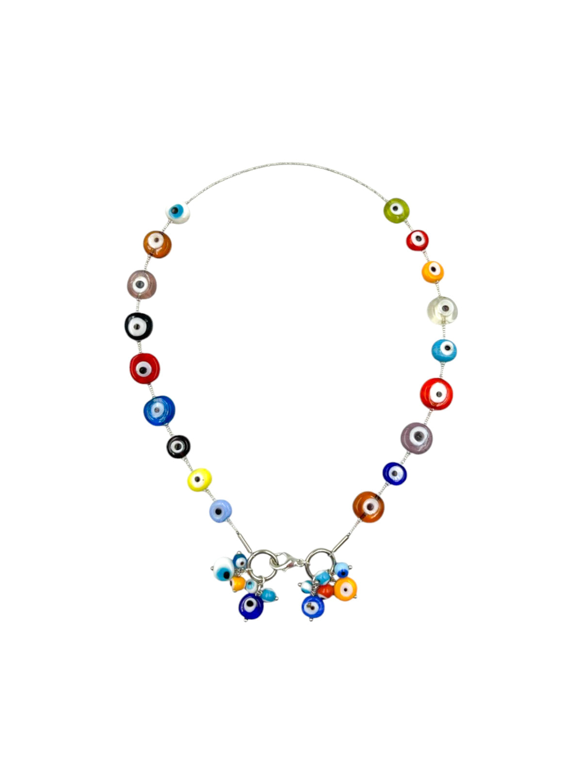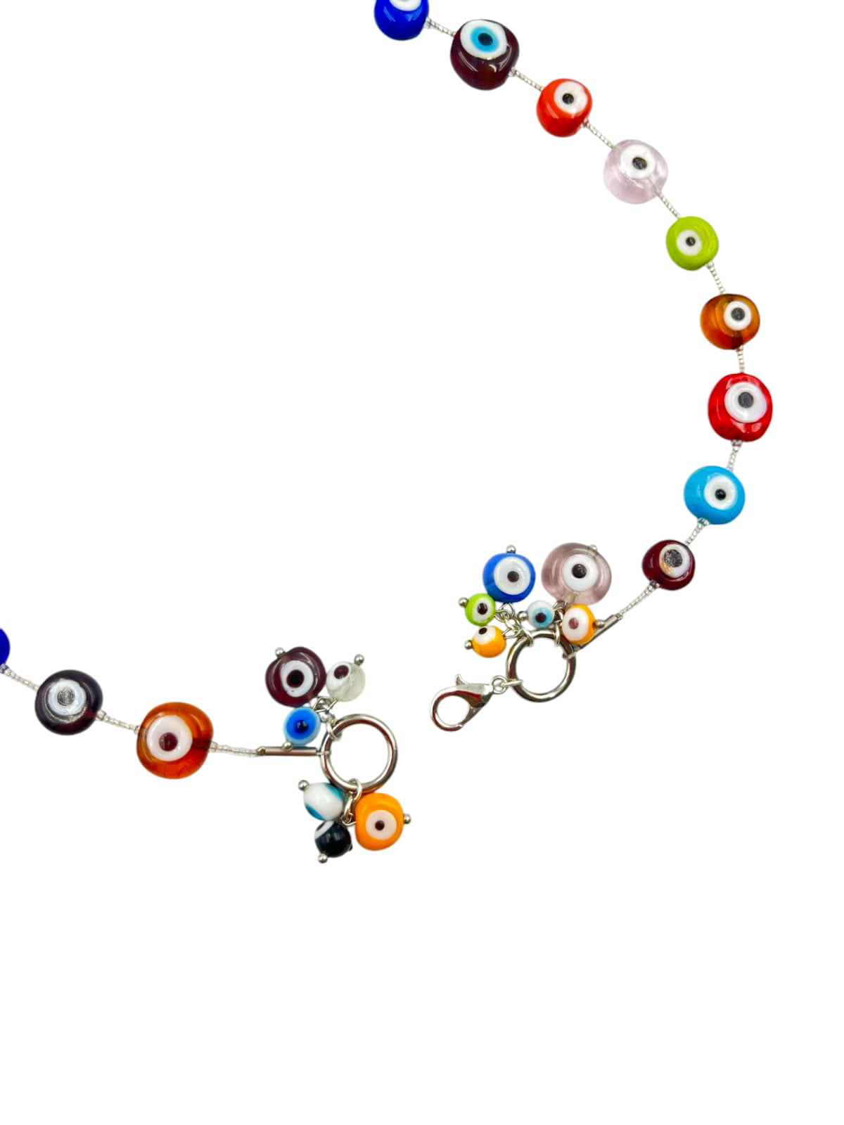 Colar curto, contas de olho grego em vidro e miçangas da República Tcheca.