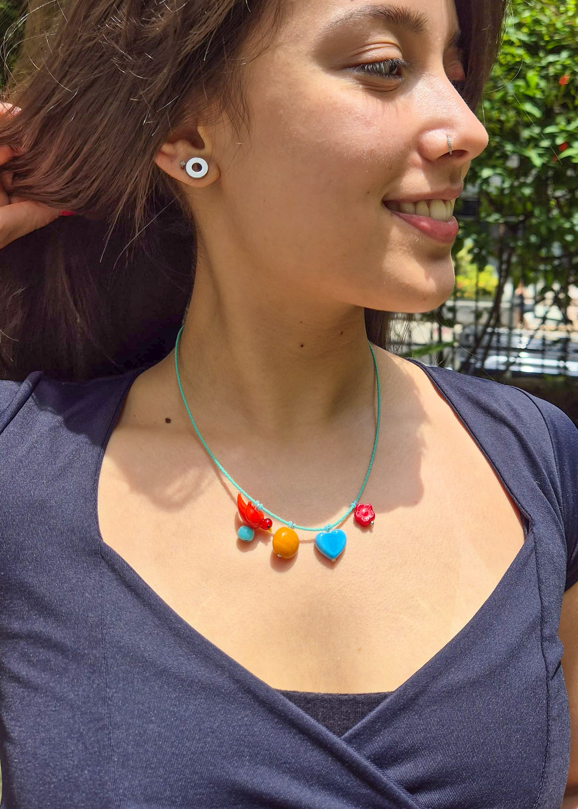 Colar Passarinho apaixonado - azul turquesa