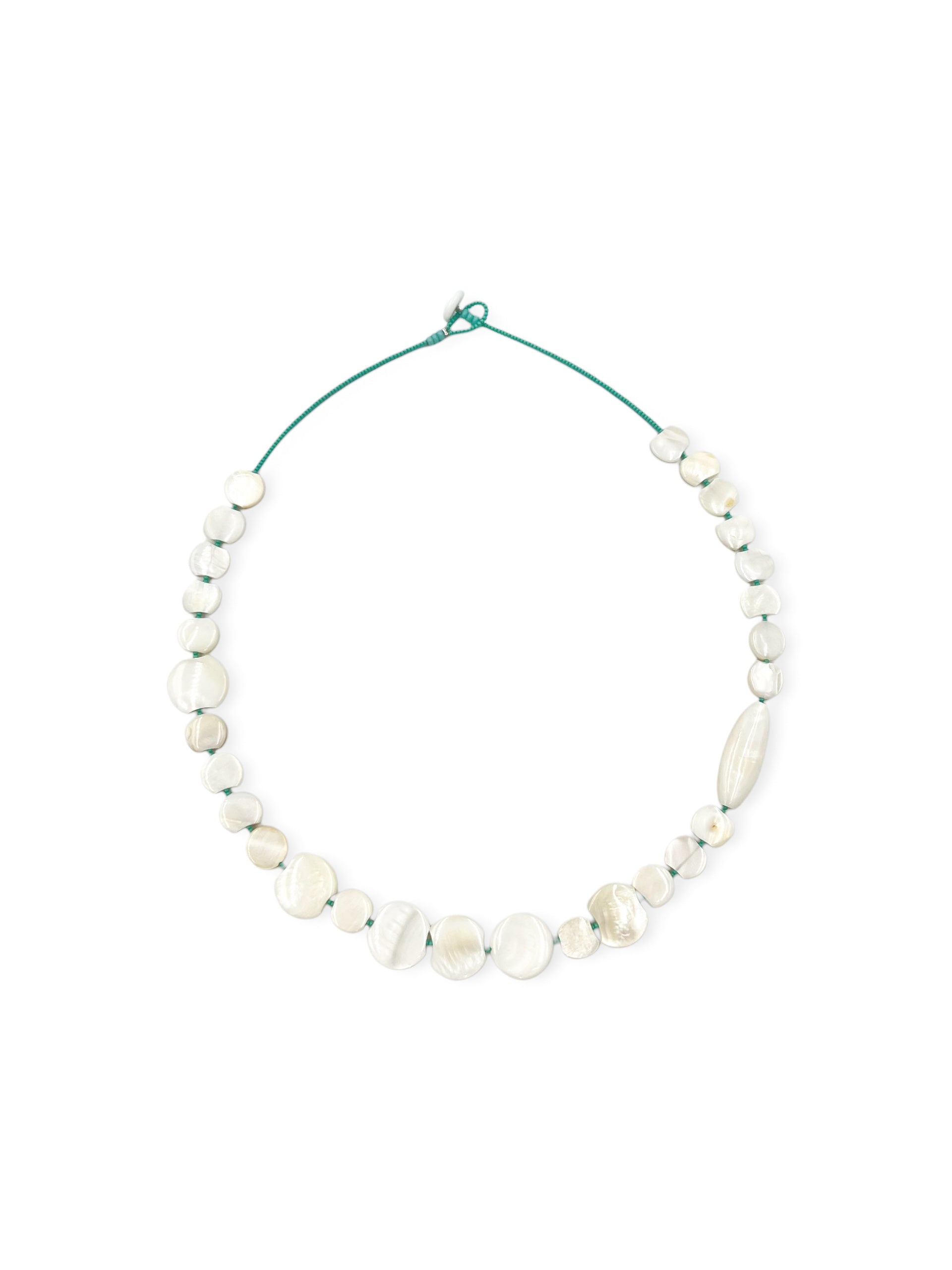 Contas de madrepérola natural e miçangas azul turquesa de vidro da República Tcheca.
